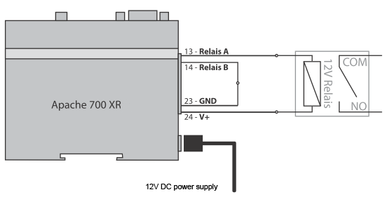 An Apache 700XR unit can switch a relay (or multiple relays on the Quattro module). this is enabled by ringing the unit. When the phone number is programmed into the unit, the Apache 700XR will recognise the number and switch the relay.