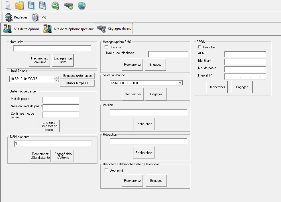 • Heure de l’unité : configure l’heure pour les numéros téléphoniques « spéciaux » et le journal.