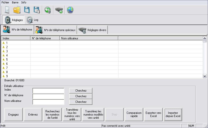 • Pour charger un nouveau numéro téléphonique, vous devez utiliser 3 cases de saisie vide. Après saisie, cliquez sur « Configurer ». Le nouvel utilisateur est alors sur la liste.