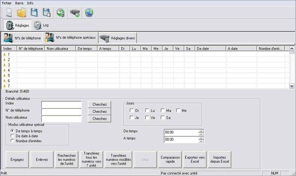• Il y a 400 cases de saisie. Il peut donc possible d’ajouter 400 numéros téléphoniques « spéciaux ».